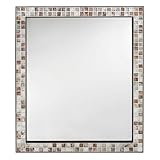 The Briscoe Mirror features a beautiful mosaic of marble tiles that are sure to add a sophisticated touch to your home. Add it to your bath, kitchen, or entryway for a clean, transitional look you're sure to love. Order yours today! Wood cleat on back provides easy hanging. Glass is non-beveled. Actual size is 32"Hx27"W Read full overview